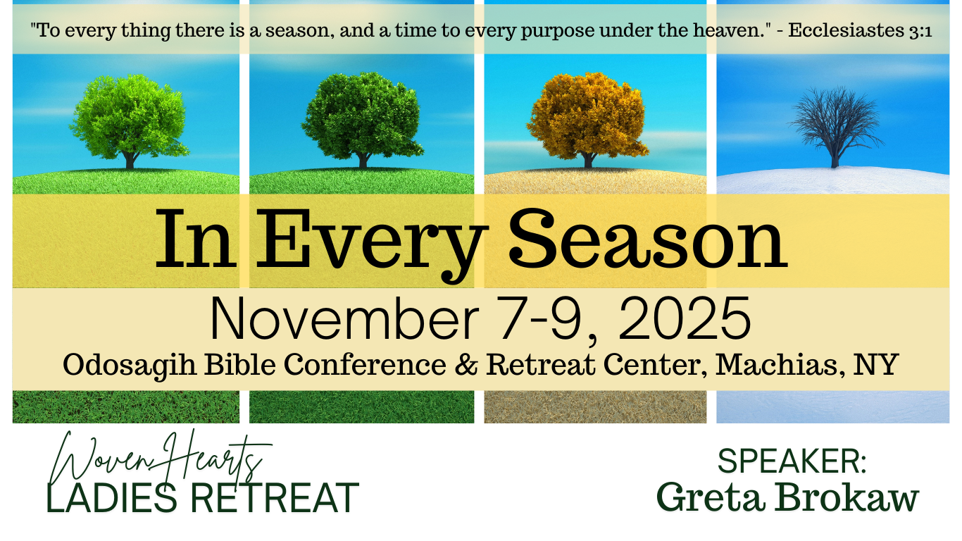 Ladies of Living Word, we invite you to join us for our Ladies Fall Retreat entitled, "In Every Season: To Everything There is a Season, and a Time to Every Purpose Under the Heaven." -Ecclesiastes 3:1